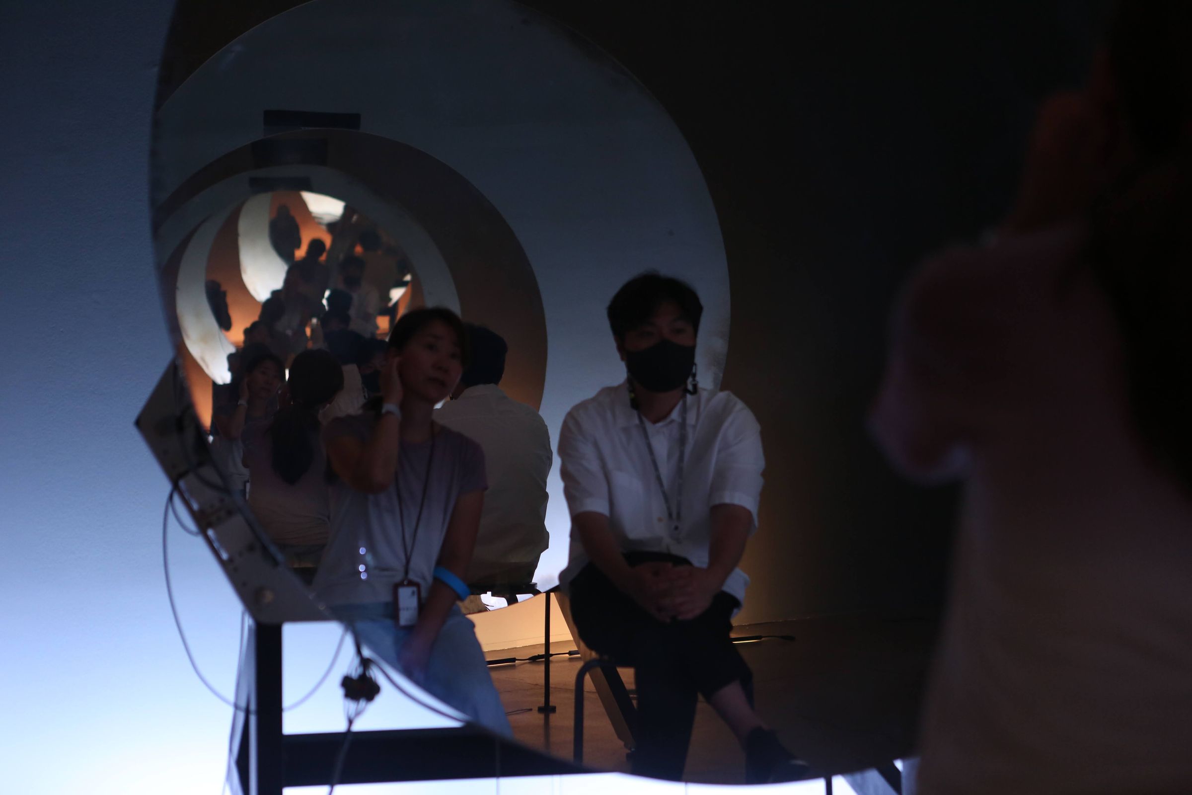 GAZE allows the audience to endlessly oscillate between the subject gazing at oneself and the object of gaze-one's self-image. Kimchi and Chips pays close attention to the effects and phenomena created by the infinite progression of light, and attempts to amplify such effect through a "mirror", an ancient image-producing medium and an apparatus for constructing subjectivity.
