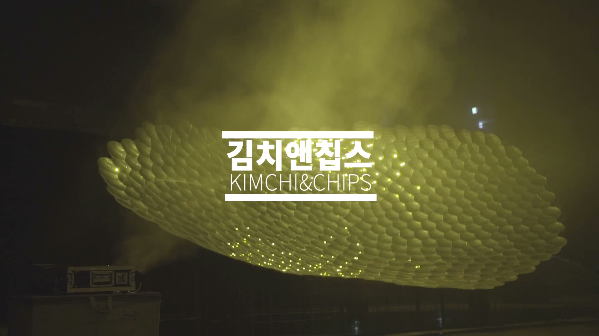 수백개의 오목 거울에 반사된 프로젝션의 빛은 허공의 연무 위로 켜켜이 중첩된다. 반사된 빛들을 허공의 한 지점에 모으는 김치앤칩스만의 기술은 공간, 허공 자체를 커다란 캔버스 삼고 빛을 안료 삼아 환영과 같은 이미지를 그려낸다.