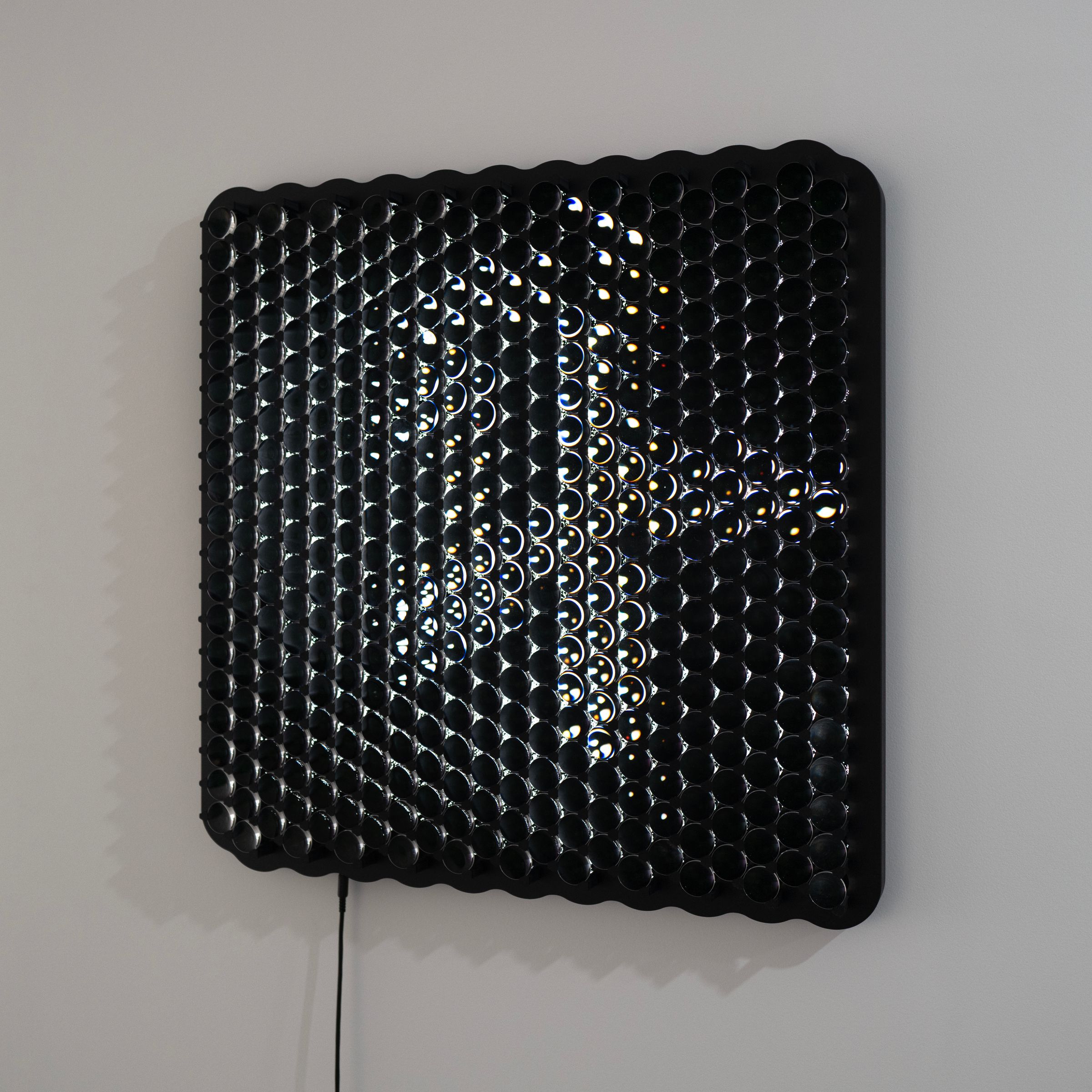 Within the bounded viewing zone, a single character is always visible. But as the viewer moves within a range of one to three meters, shifting up, down, left, or right, the characters morph smoothly from one to the next. This transformation is not random but follows the internal structure of the machine’s internal logic. The work connects a historically censored linguistic expression with the contemporary mechanisms of algorithmic language, staging a dialogue between human resistance and computational patterning.